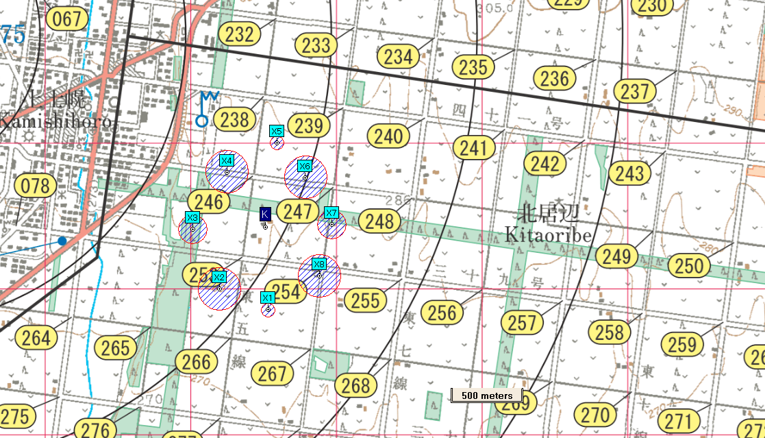 Notes: a. position of set goal / target K - 8751/8843 - MMA 60m Min. distance ILP to all goals/targets set by Director: 1500m b. target detail Red Target will be displayed (MMA = 60m) サッポロビール賞